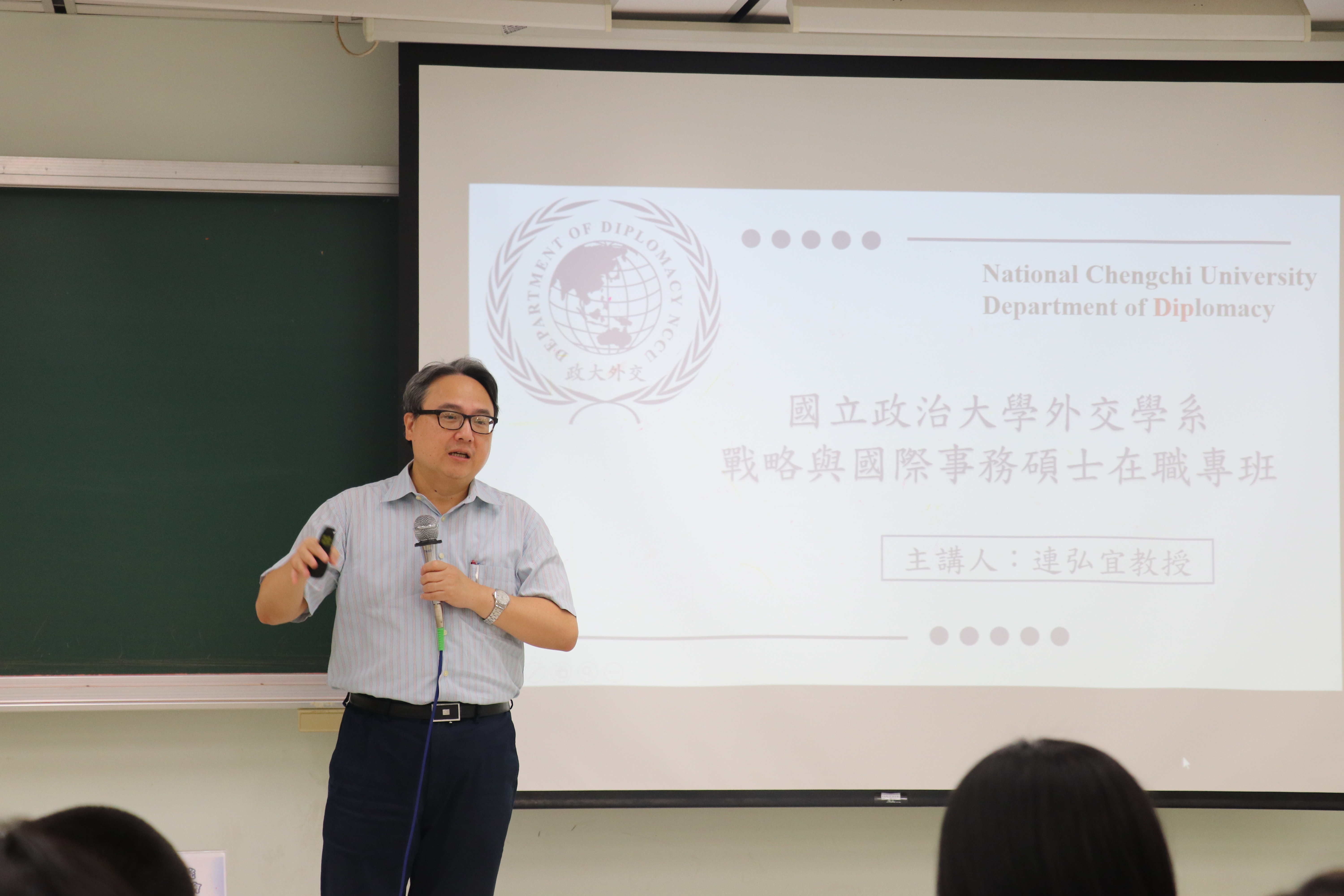 接著由外交系系主任吳崇涵致詞提及近年來兩專班的發展成果大家有目共睹,學生來自於軍、警、政、媒界的比例極高,近年來民間企業界學生比例也逐漸攀升,可見國際事務研究於業界實務與合作方面占有極大優勢。再者本校深厚的人文社會科學研究、學術資源方面可謂國內首屈一指,不僅師資豐富、區域研究涵蓋多元、更重要的是暑期「海外見學」活動,帶領同學實地深訪海外高教、智庫與駐外單位,實踐「讀萬卷書,行萬里路」。